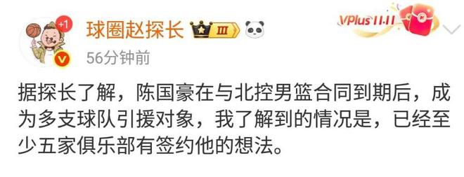 決定權(quán)在球隊(duì)手里!北控今夏有陳國(guó)豪B類合同獨(dú)家簽約權(quán)或匹配權(quán)