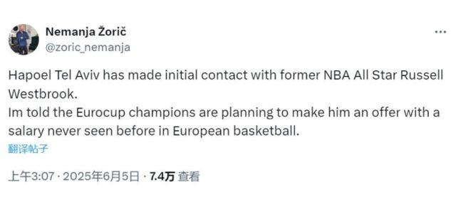 轉(zhuǎn)戰(zhàn)歐洲?勁旅甩來(lái)天價(jià)合同,力邀威斯布魯克加盟