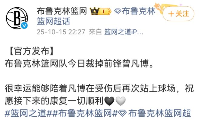 就在今天,布魯克林籃網(wǎng)隊(duì)官方宣布,正式裁掉中國(guó)球員曾凡博。諷刺的是,這一決定距離他在NBA中國(guó)賽的首秀,僅僅過(guò)去了三天。